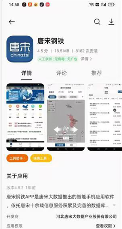 唐宋公司推出的智能手机应用软件,以信息平台为依托打造的唐宋钢铁用户专用的信息通道,推出商务中心、资讯中心、实时期货中心等功能应用平台。提供更稳定的接收、更便捷的订阅、更丰富的内容,让客户能够随时随地了解钢铁行业动态,为客户提供市场决策参考。